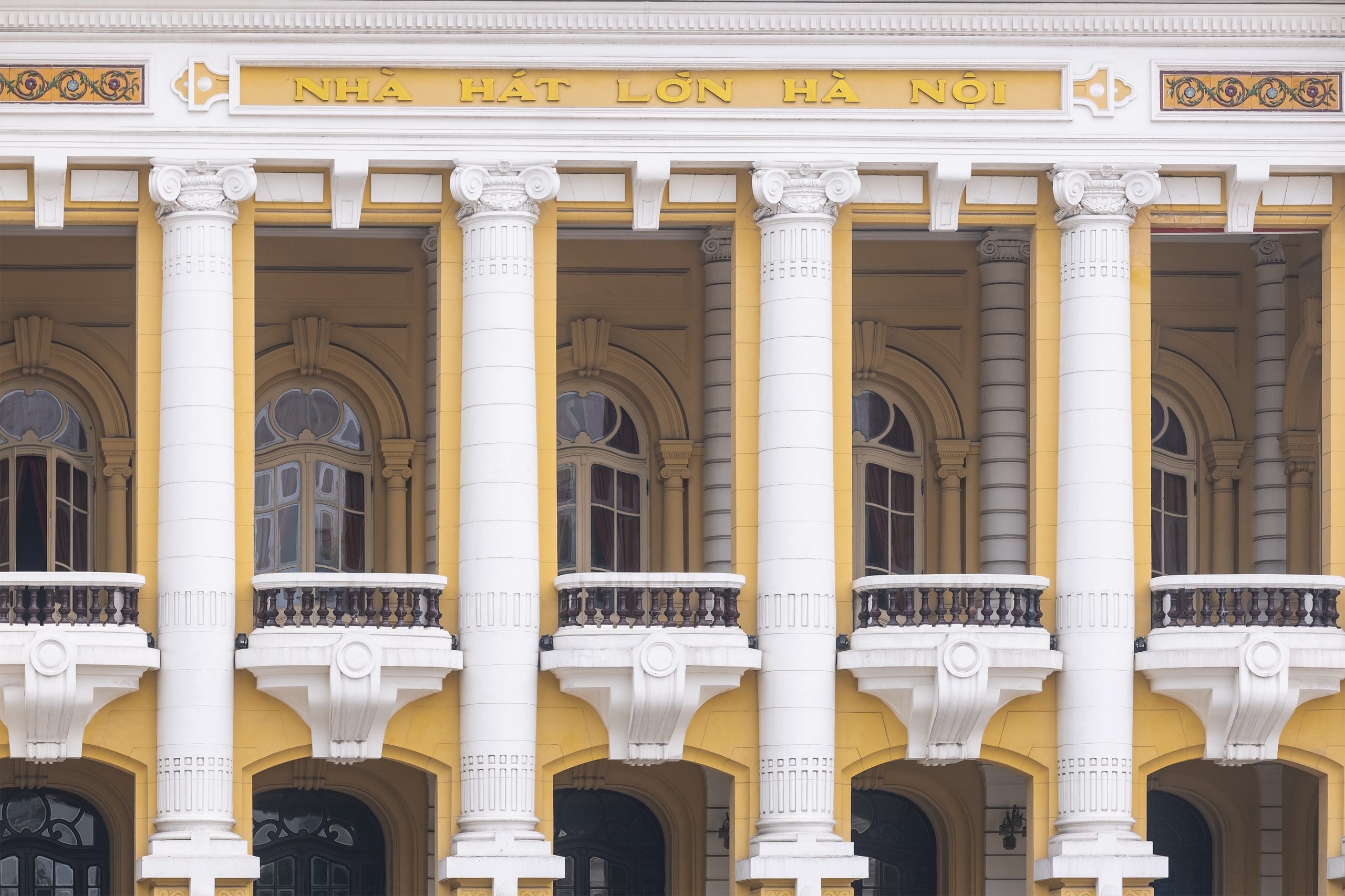 The Hanoi Opera House is a beautiful example of French architecture. It was modeled after the Palais Garnier in Paris and built during the French Colonial occupation of Vietnam starting in 1901.