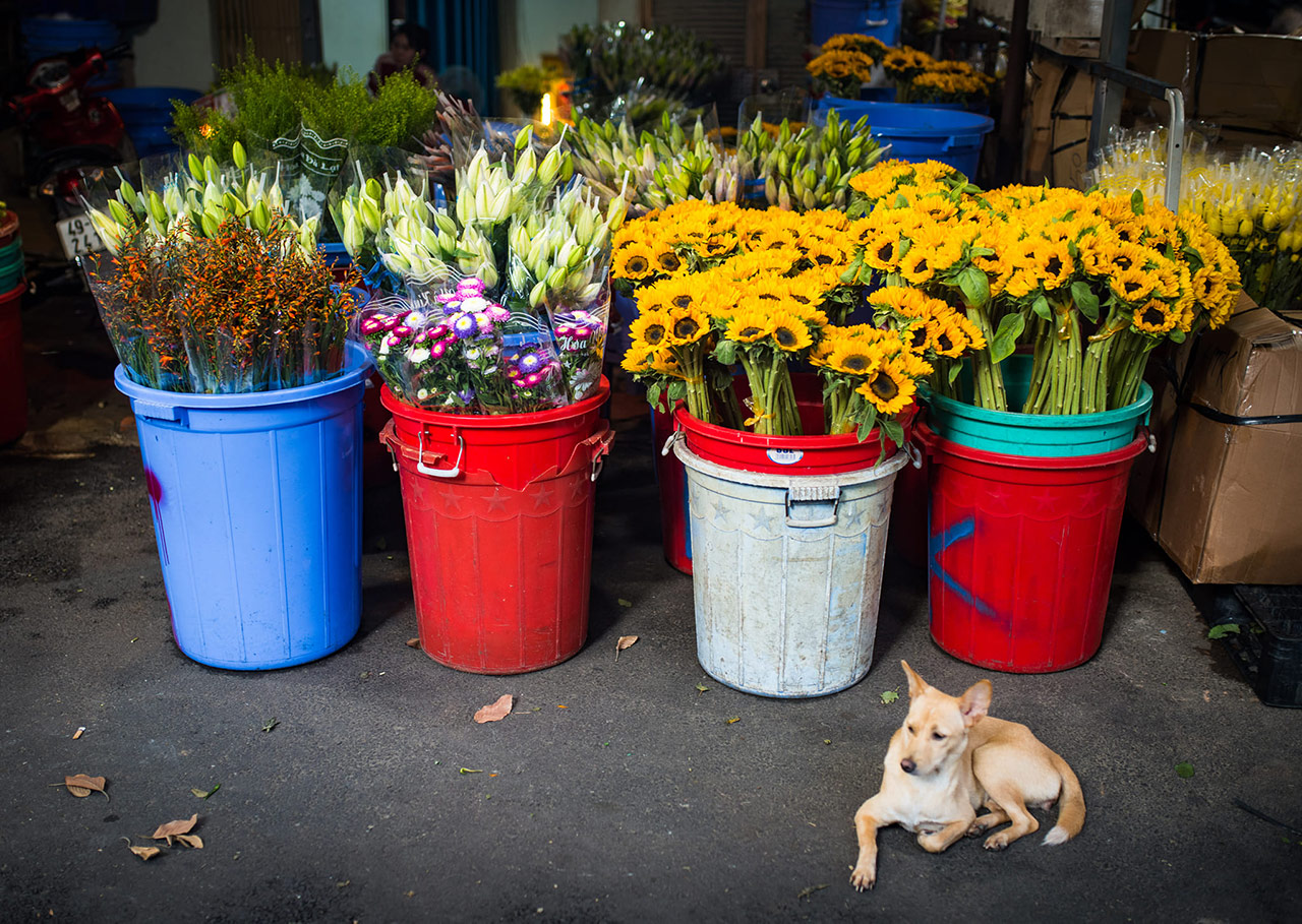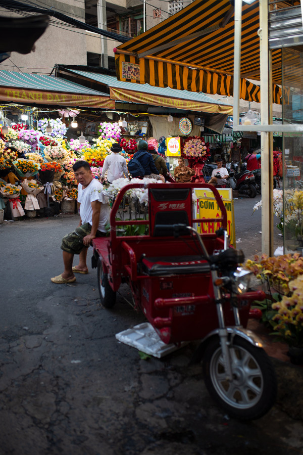 The Saigon flower market is definitely worth a trip. Unlike the Hanoi flower market which is a dedicated space just for the flower vendors, this one is in a mixed-use residential neighborhood. Though it is busiest in the early morning, there is still a lot going on in the late after around blue hour. After shooting the market you can head right next door to the Ho Thi Ky Street food market which opens around 6:00pm for all sorts of street food all in one area.