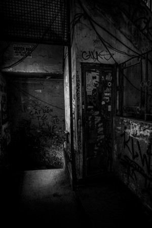 A really interesting building with everything an urban archeologist could ask for. Complete with grit, graffiti, old spiral staircase and even an all dressed up speakeasy bar — SnuffBox.
